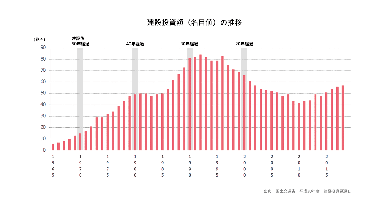 さらに、経済的陳腐化、企業の再編、海外移転等により、解体・更新が増加します。